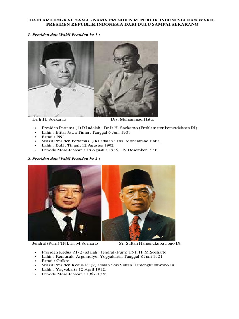 Daftar Nama Presiden Dari Awal Sampai Sekarang Pdf